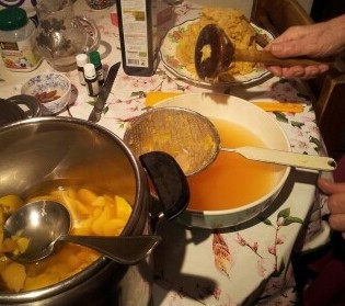 Étape 3 : On a eu envie de presser un maximum la chair des coings dans un tamis. Cela a chargé en texture nos marmelades. -Adieu aussi le bel aspect translucide des gelée de coings parfaitement réalisées-