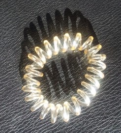 C’est la mode du moment, on a toutes des élastiques spirales dans les cheveux. Ok, c’est moche, bien qu’assez discrets, mais cela tient vraiment bien les queues de cheval et surtout, cela n’abime pas les cheveux.