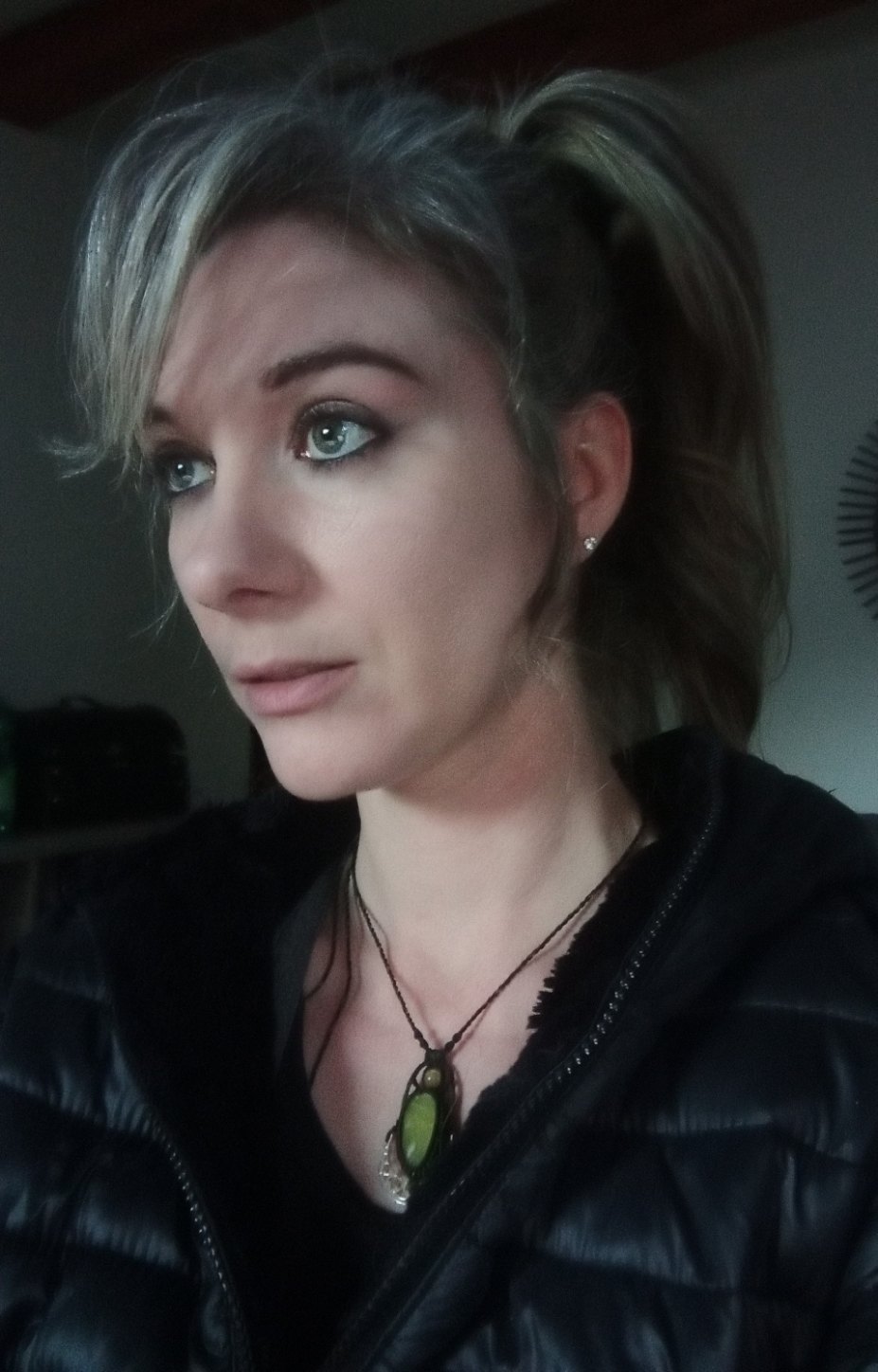 Le collier que je porte est une création de l’Ecureuillette, elle est sur Etsy ici