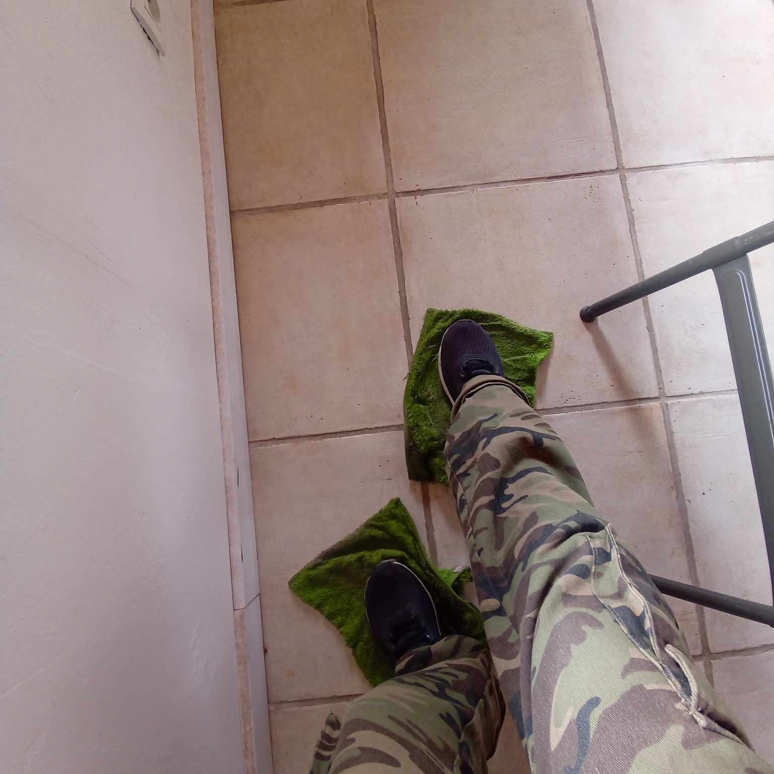 Depuis ma maladie, passer la serpillère sollicite trop le cœur, donc j’ai fait une commande vraiment utile à mon frère qui a une machine à coudre : des patins.