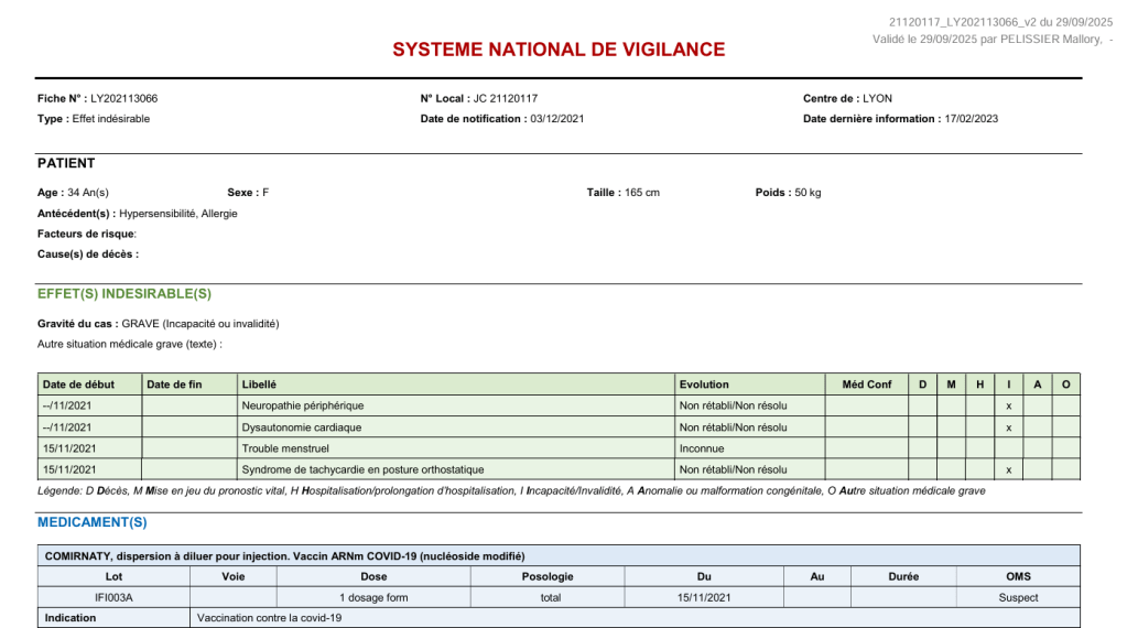 On peut être en invalidité, jeune, pour juste une dose. C’est mon cas. (voir ma fiche dense de la pharmacovigilance ci-dessous)